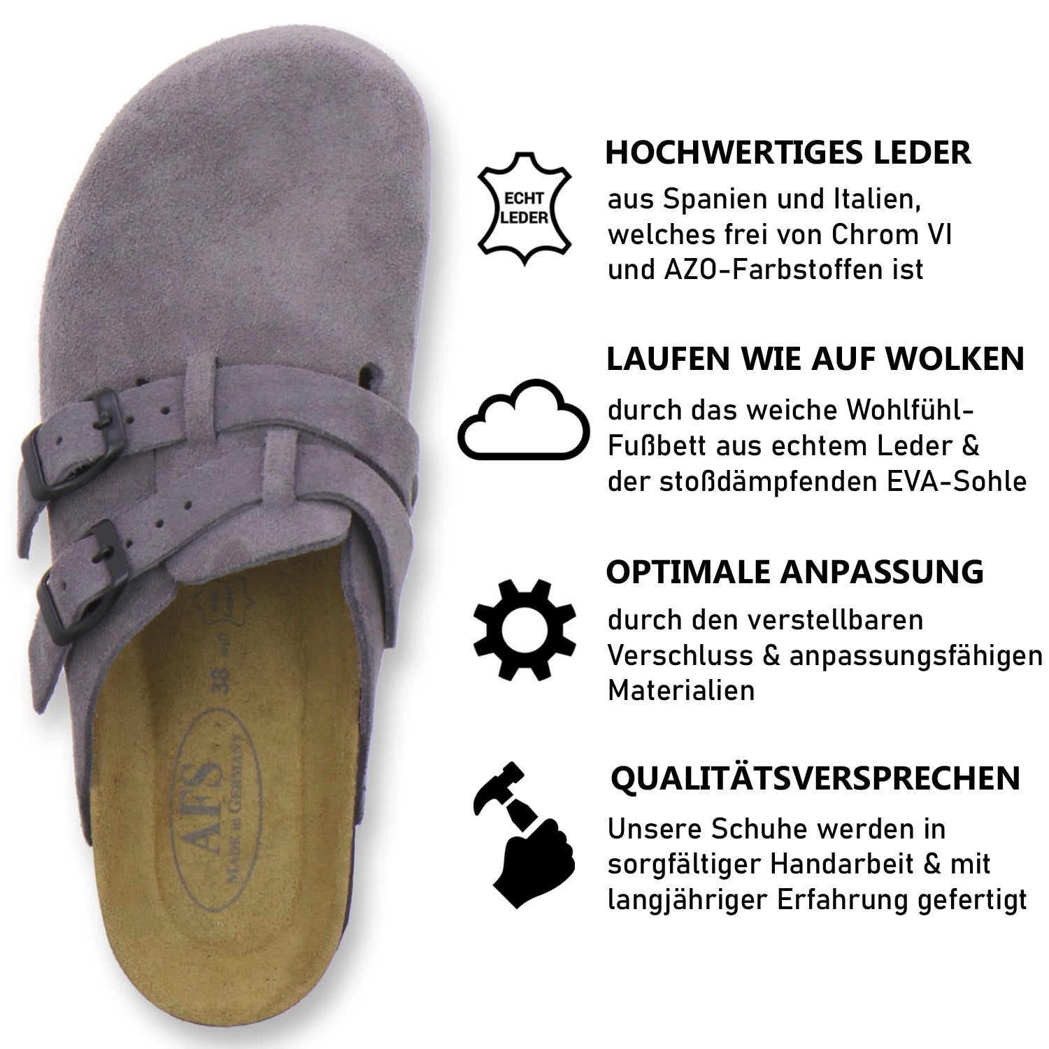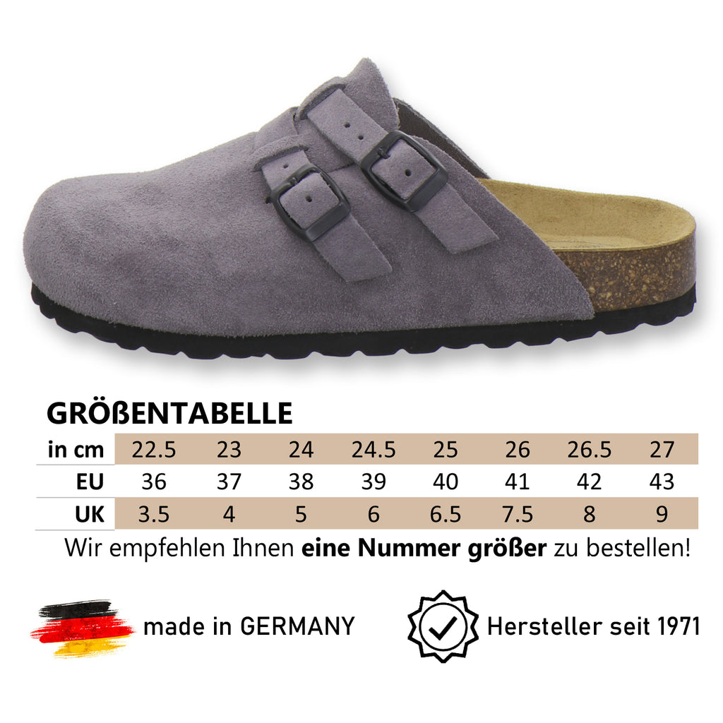 Die komfortablen Schuhe werden zu 100% in Deutschland hergestellt und garantieren eine hohe Qualität. Das hochwertige echte Leder, welches sowohl als Innen- als auch als Obermaterial der Clogs verwendet wird, stammt aus Italien und Spanien.