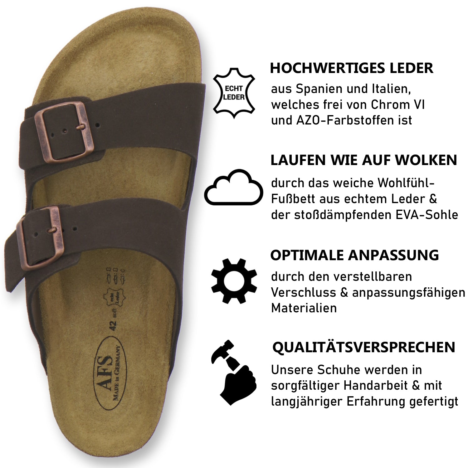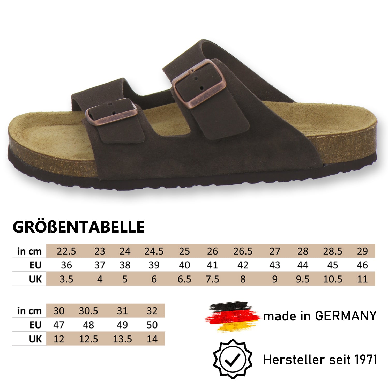 Die komfortablen Schuhe werden zu 100% in Deutschland hergestellt und garantieren eine hohe Qualität. Das ausschließlich hochwertige Leder, welches sowohl als Innen- als auch als Obermaterial der Pantoffeln verwendet wird, kommt aus Italien und Spanien.