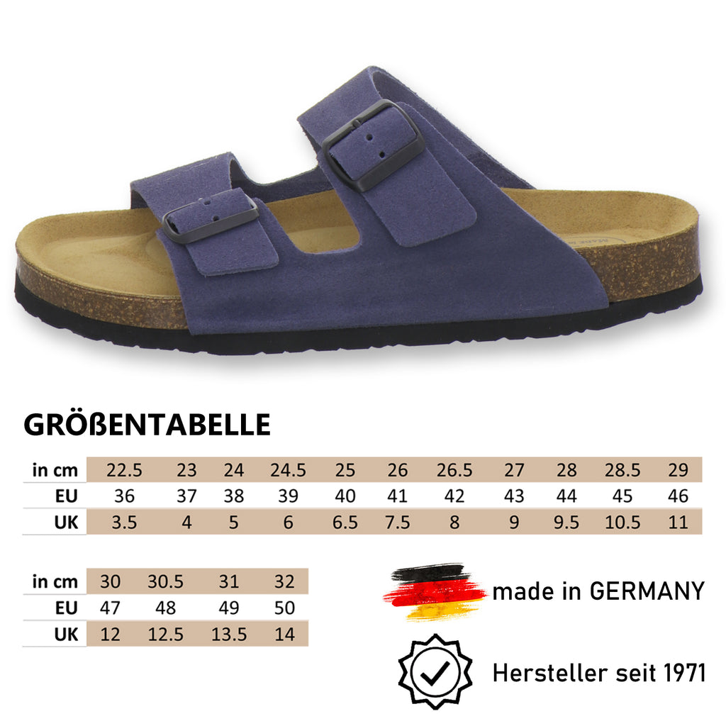 Die komfortablen Schuhe werden zu 100% in Deutschland hergestellt und garantieren eine hohe Qualität. Das ausschließlich hochwertige Leder, welches sowohl als Innen- als auch als Obermaterial der Pantoffeln verwendet wird, kommt aus Italien und Spanien.