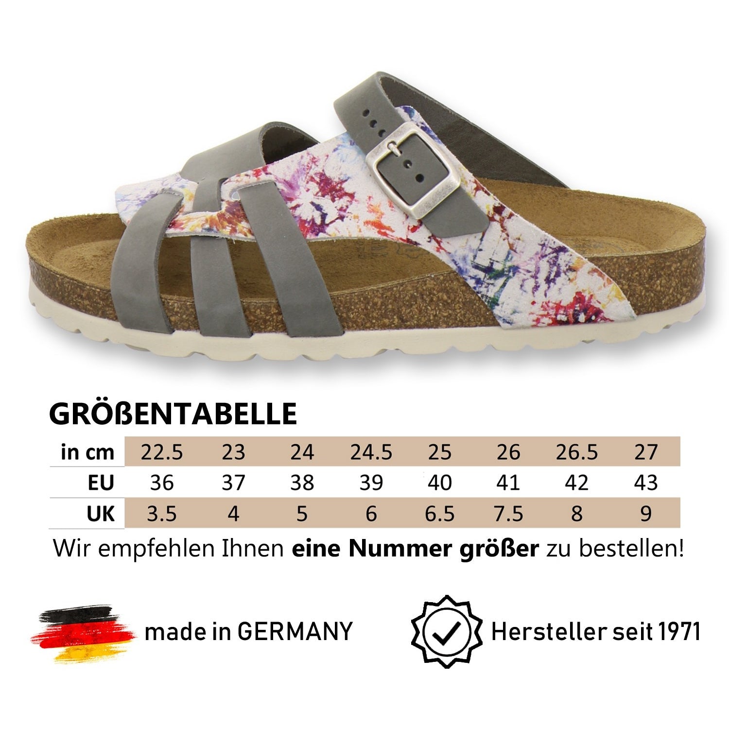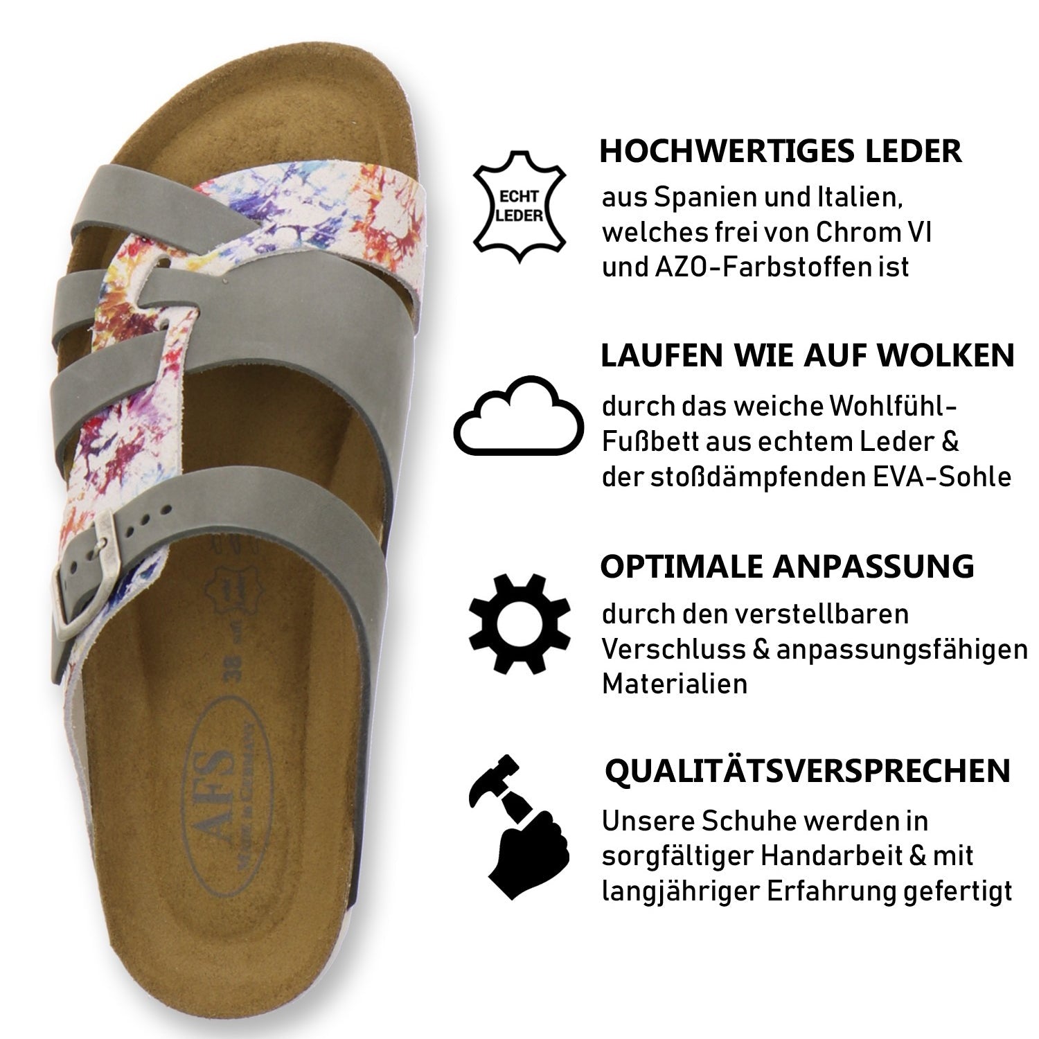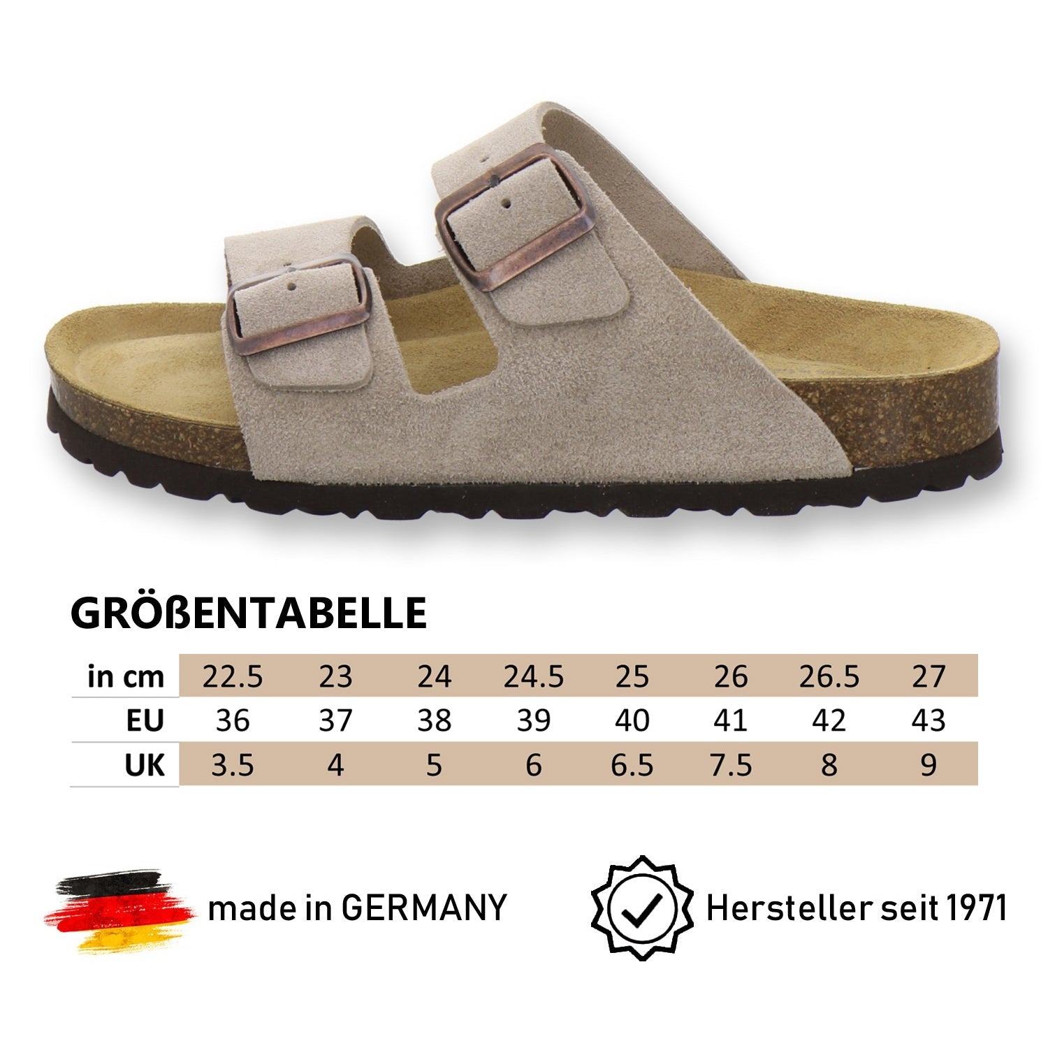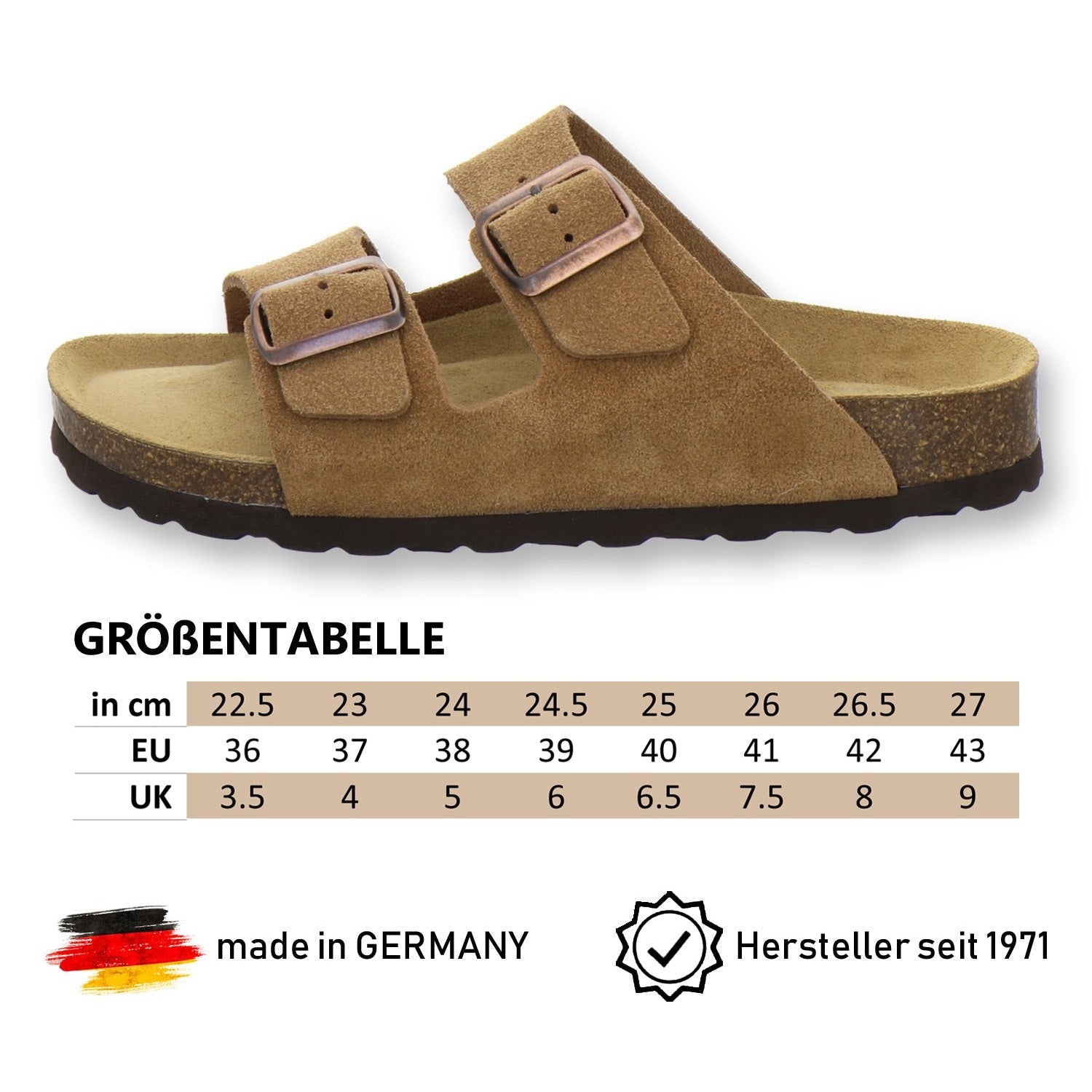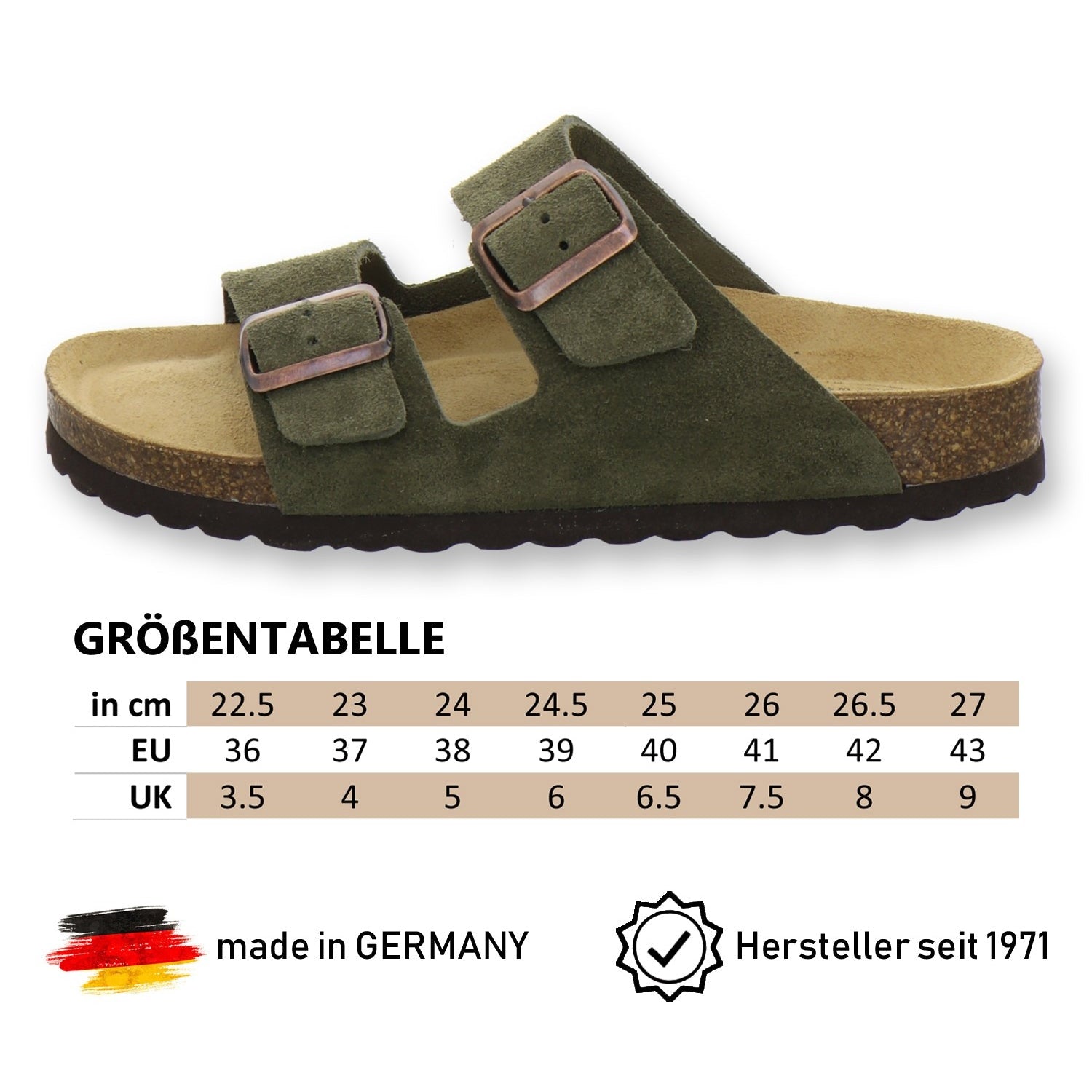 Die komfortablen Schuhe werden zu 100% in Deutschland hergestellt und garantieren eine hohe Qualität. Das ausschließlich hochwertige Leder, welches sowohl als Innen- als auch als Obermaterial der Pantoffeln verwendet wird, kommt aus Italien und Spanien.