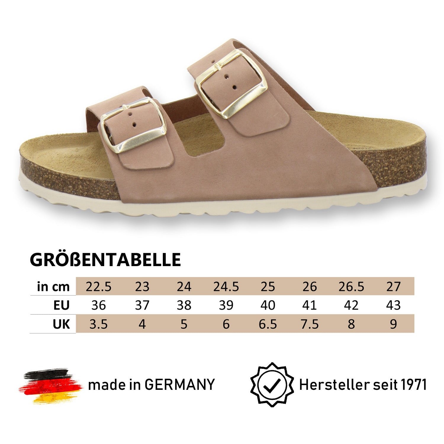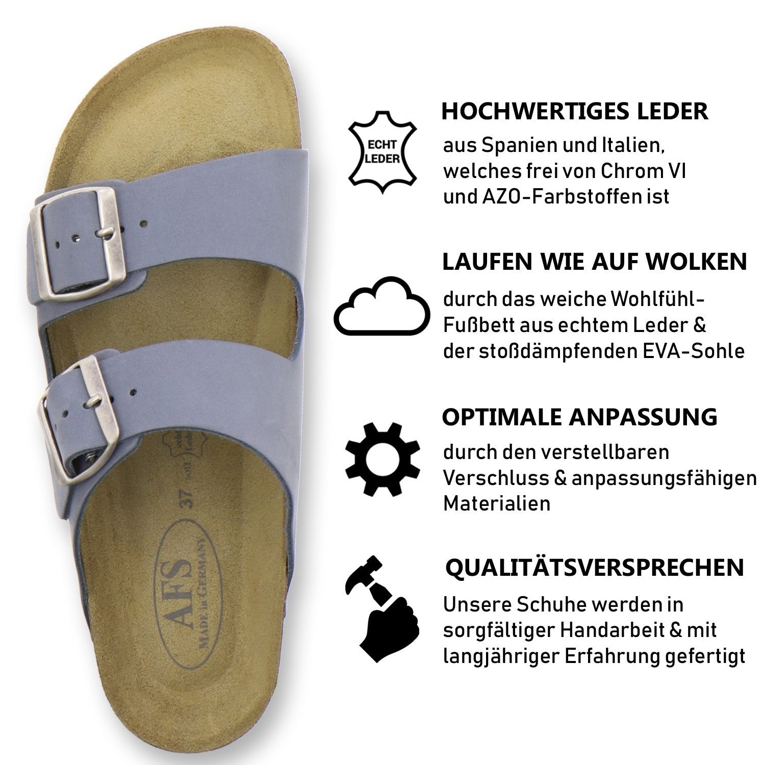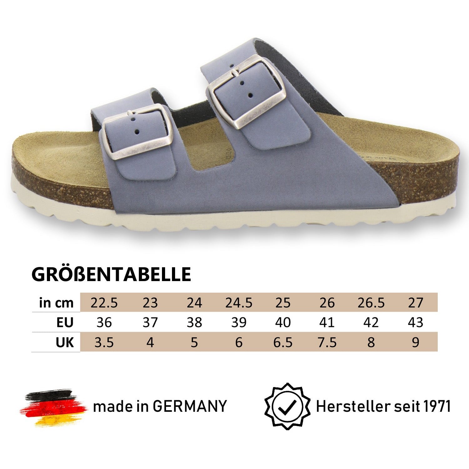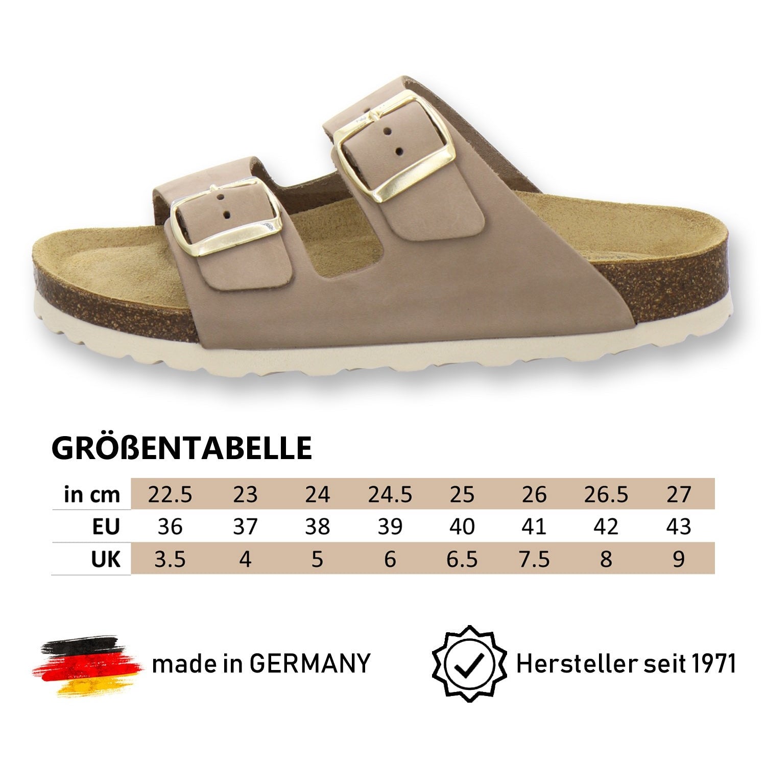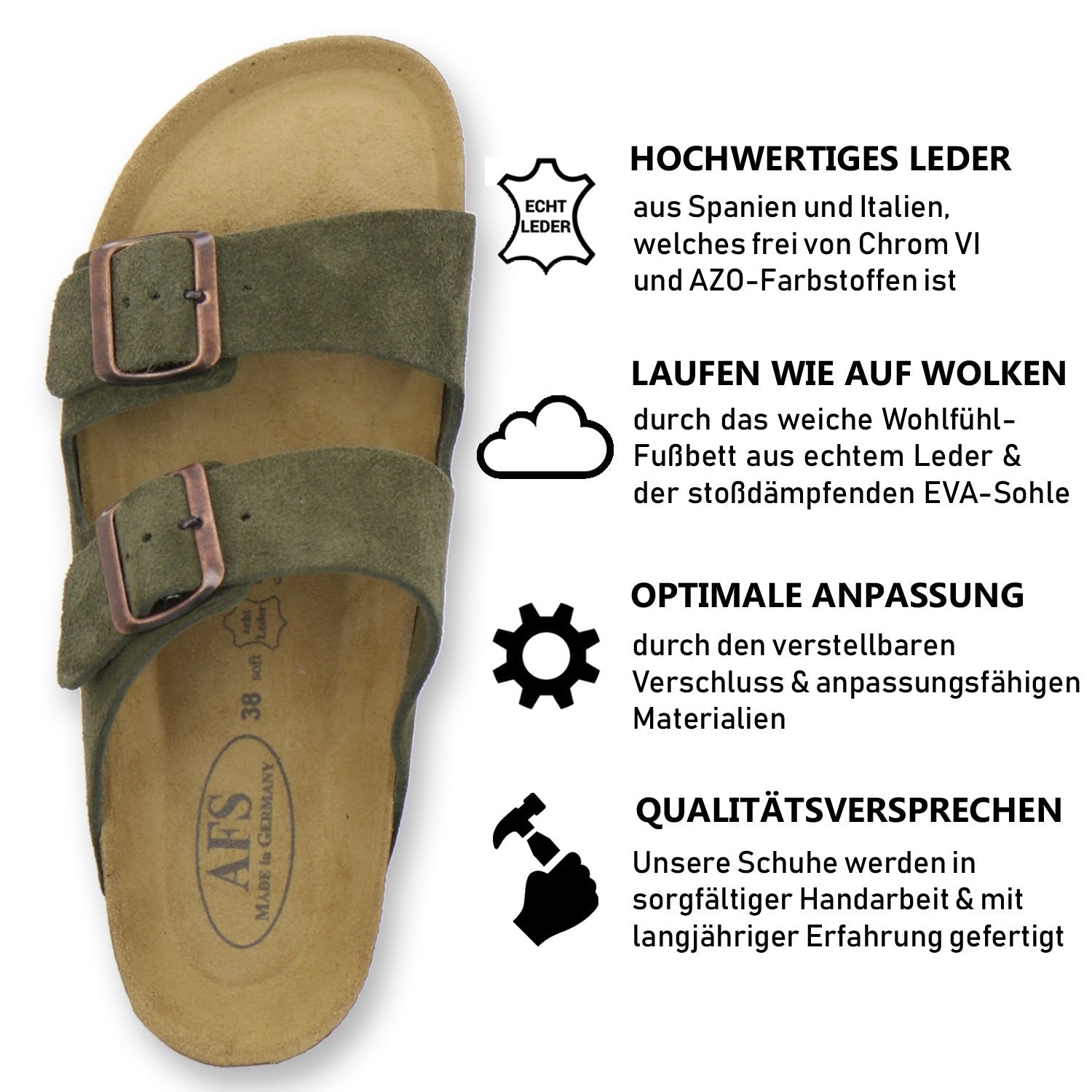 Die komfortablen Schuhe werden zu 100% in Deutschland hergestellt und garantieren eine hohe Qualität. Das ausschließlich hochwertige Leder, welches sowohl als Innen- als auch als Obermaterial der Pantoffeln verwendet wird, kommt aus Italien und Spanien.